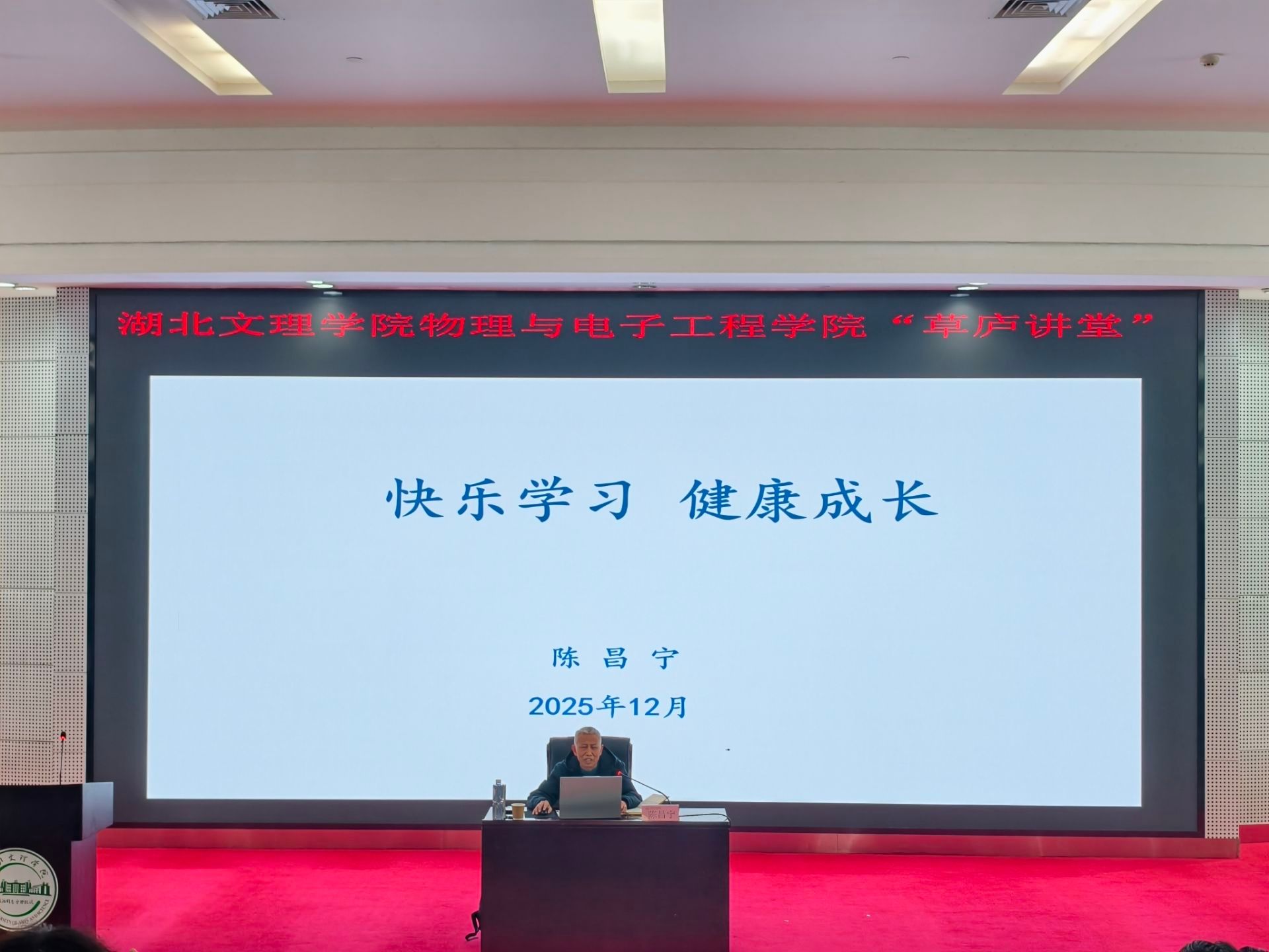 (通讯员 王勇 刘昊洋)2025年12月11日下午,物电学院在图书馆三楼报告厅开展草庐讲堂,活动邀请中国电信高级专家,襄阳市市政府特聘信息化专家陈昌宁为大一、大二学生作“快乐学习 健康成长”主题讲座。