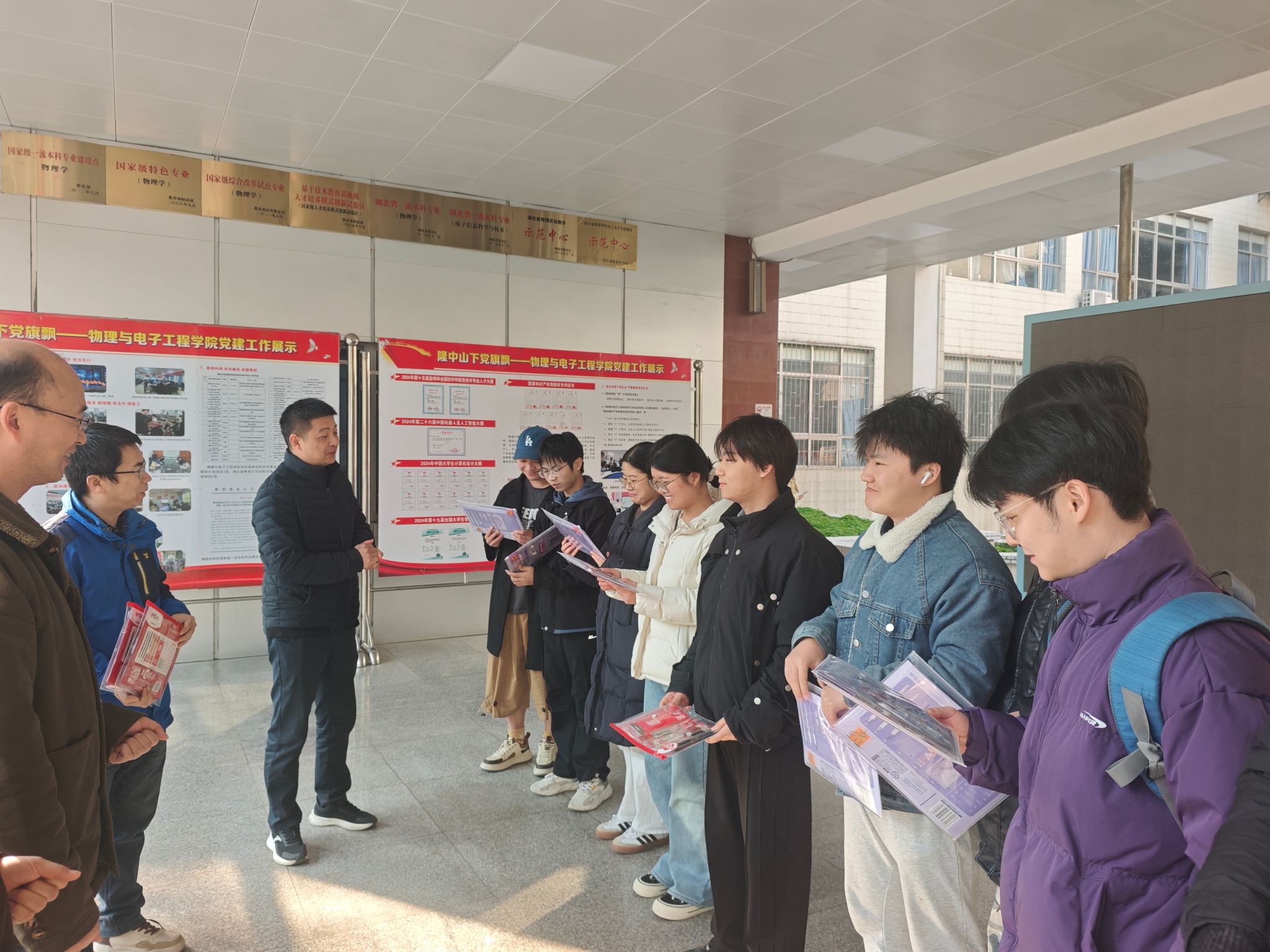 (通讯员:王勇)2025年12月5日上午,物理与电子工程学院在N1教学楼一楼大厅举行了一场温馨的考研慰问活动。学院院长汪竞阳、党委副书记詹莉带领各系主任、辅导员和班主任,为即将奔赴考研考场的学子们送上精心准备的考研文具套装,传递学院的温暖关怀与殷切期盼。