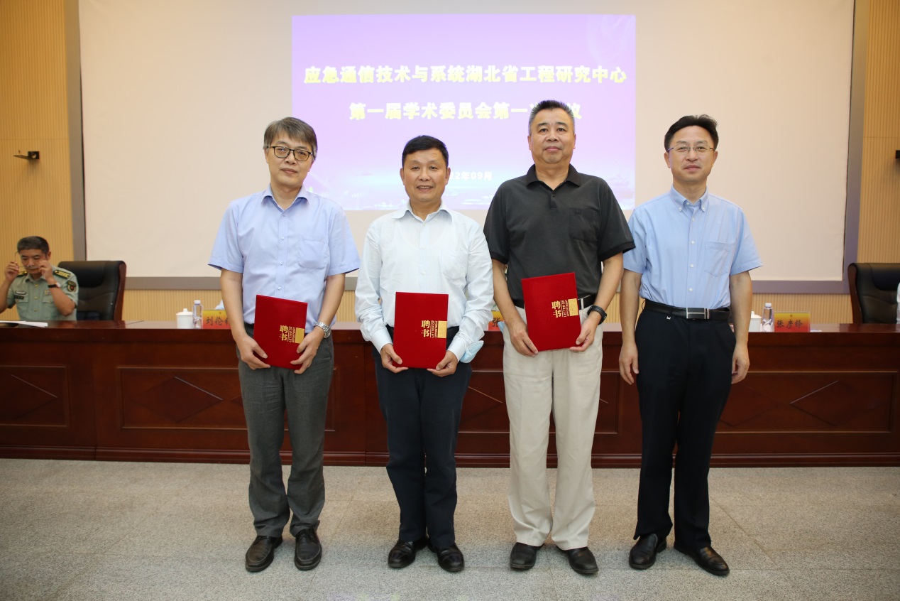 (物电学院 通讯员 刘会衡)9月24日,应急通信技术与系统湖北省工程研究中心(以下简称工程研究中心)第一届学术委员会第一次会议在武汉召开,校长张彦铎出席会议并为新增学术委员会委员颁发聘书。副校长刘伦钊,国防科技大学信息通信学院院长张旭、副院长冯海涛,鸣飞伟业技术有限公司董事长赵梦奎出席会议。