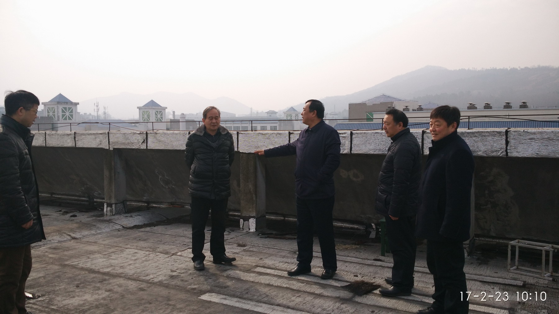 (物电学院教工通讯员 胡益丁)2月23日上午,副校长魏跃春带领后勤管理处处长陈勇,维修科科长马少玉来到物电学院,现场办公,查看解决物电实验楼楼顶漏雨问题。物电学院院长屈少华和相关实验室负责人陪同。